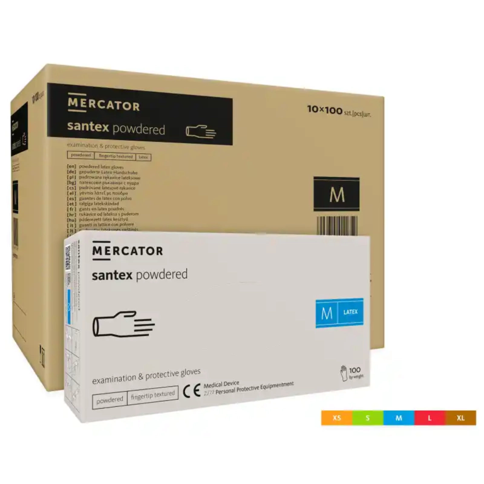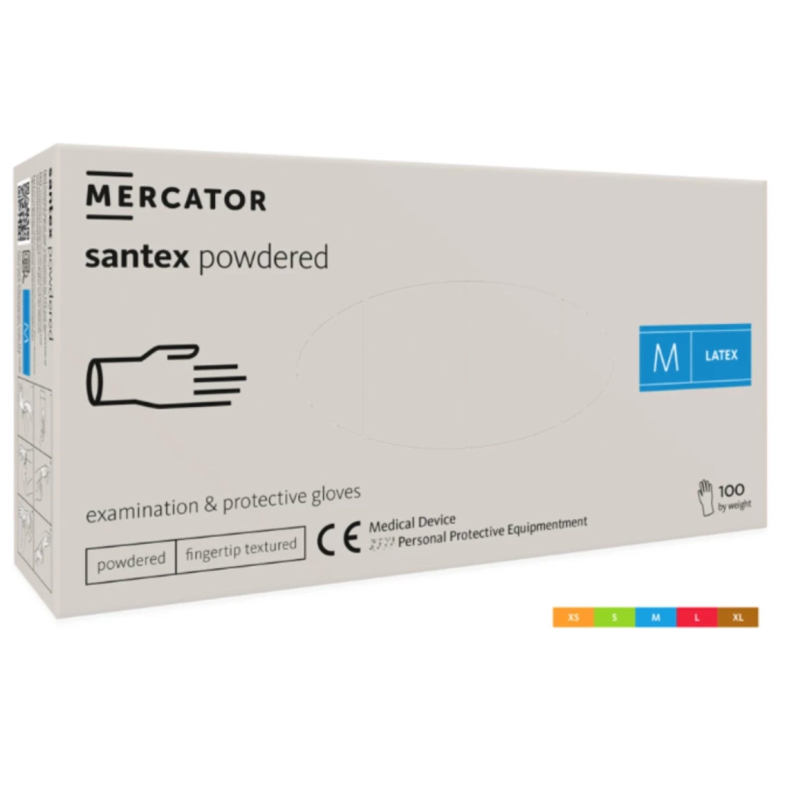 Jednorazowe rękawiczki diagnostyczne z serii santex®, wykonane z kauczuku naturalnego, pudrowane. Posiadają teksturowane palce. Rekomendowane do wykorzystywania np. w pielęgniarstwie, weterynarii, salonach kosmetycznych, do kontaktu z żywnością przy drobnych pracach domowych i montażowych. Dostępne w rozmiarach od XS do XL, pakowane po 100 szt. Rękawice te są bardzo cienkie i jednocześnie wyjątkowo elastyczne.