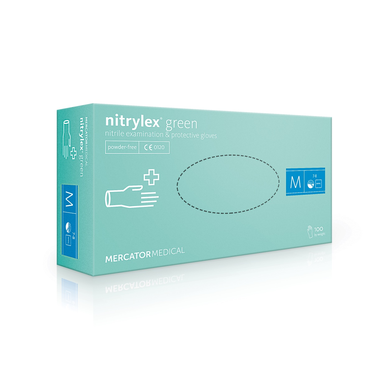 Bezpudrowe, jednorazowe rękawiczki nitrylowe nitrylex® green. Przeznaczone do wykorzystywania np. na oddziałach dziecięcych, w laboratoriach, przy kontakcie z substancjami chemicznymi, przy czynnościach sanitarno-higenicznych, W salonach kosmetycznych i fryzjerskich, w weterynarii oraz w pracach domowych. Powierzchnia rękawiczek nie jest całkowicie gładka, dodatkowo teksturowanie na palcach pozwala na pewny chwyt. Rękawice mają uniwersalny kształt, pasujący zarówno na prawą, jak i na lewą dłoń.