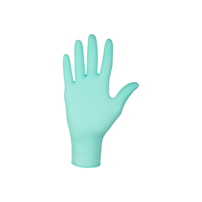Jednorazowe rękawiczki nitrylowe nitrylex® green w kolorze miętowej zieleni. Produkt dostępny w rozmiarach od XS do XL. Powierzchnia rękawiczek nie jest całkowicie gładka, dodatkowo teksturowanie na palcach pozwala na pewny chwyt. Rękawice mają uniwersalny kształt, pasujący zarówno na prawą, jak i na lewą dłoń.