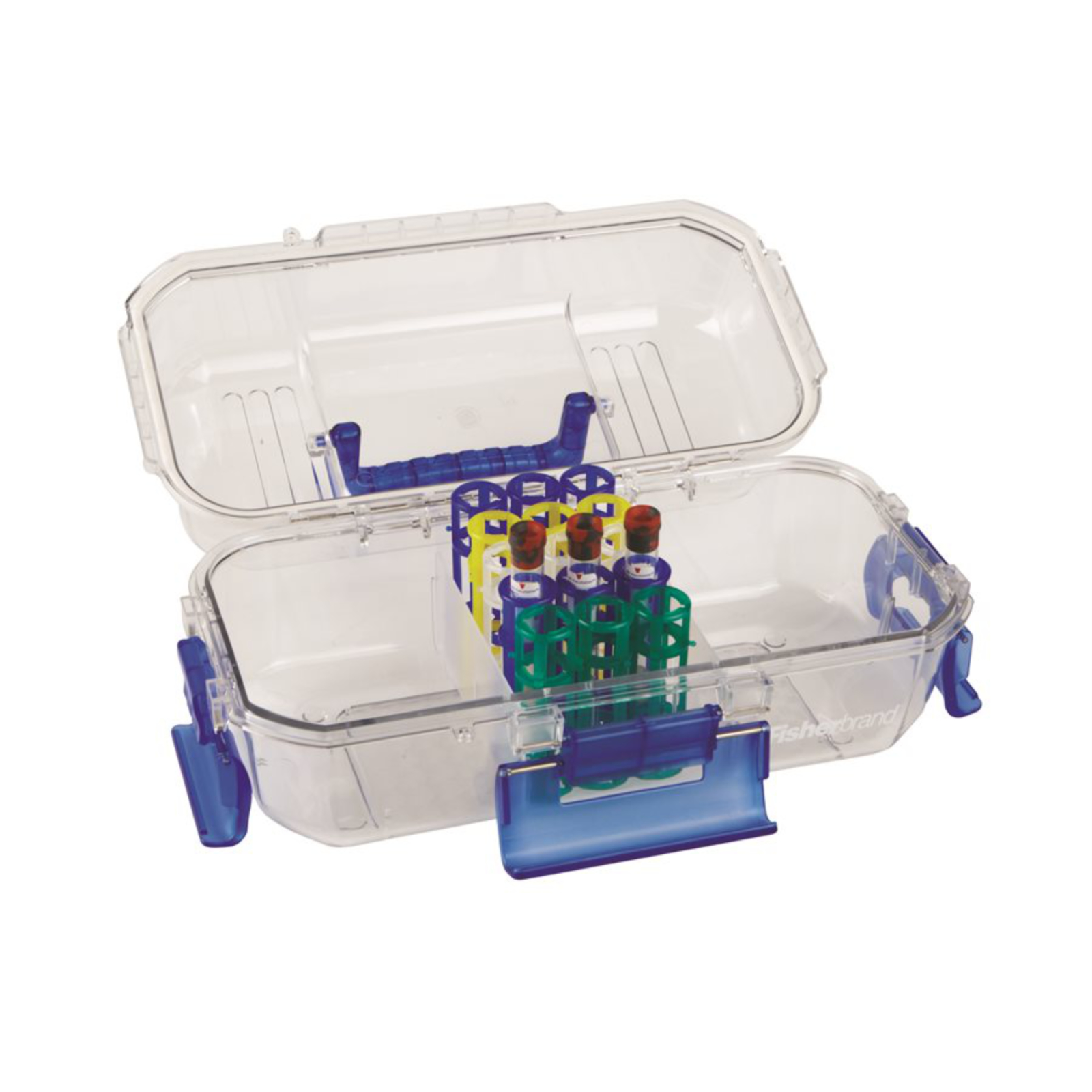 Pojemnik transportowy dostępny jest w trzech kolorach. Mieści probówki o wymiarach 13 i 16 mm w standardowych statywach, np. statywach ekonomicznych z PP, czy statywach z PP na probówki.