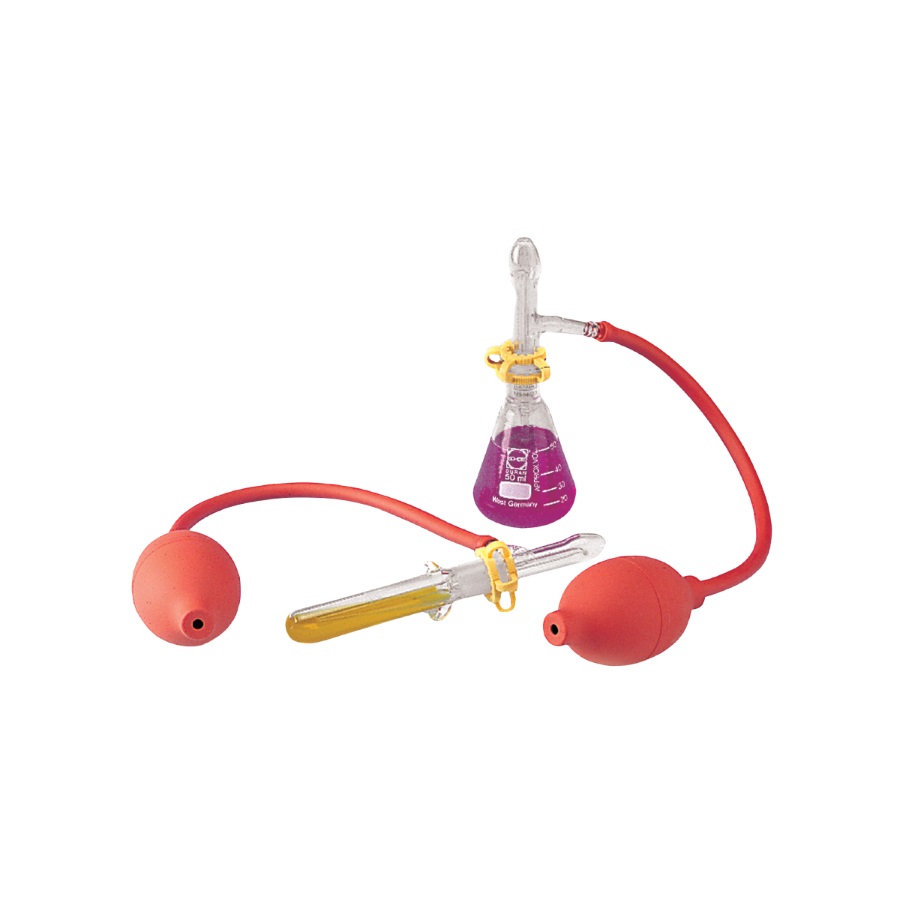 Mały, poręczny spryskiwacz wykonany ze szkła borokrzemowego 3.3. Przeznaczony do rozpryskiwania niewielkich ilości odczynników na płytki chromatograficzne. Odczynniki mają styczność tylko ze szkłem. Do wyboru dwa modele: model 1 z prostą rurką w komplecie z probówką ze szlifem, poj. 12 ml. Model 2 z ukośną rurką w komplecie z kolbą Erlenmeyera, poj. 50 ml. Gruszka gumowa może zostać zastąpiona przez inne urządzenia pompujące.
