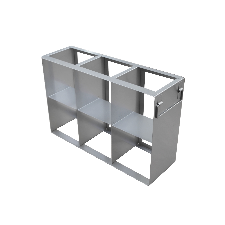 Poziomy stelaż na pudełka wykonany z wysokiej jakości stali szlachetnej. Przeznaczony do pudełek na probówki typu Falcon.