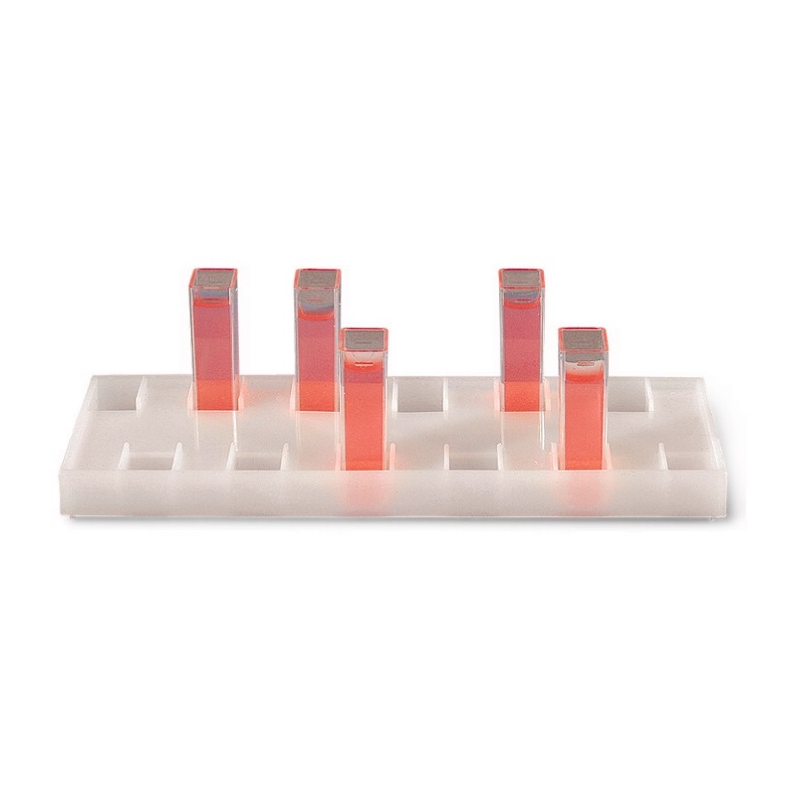 Stojak na dwanaście kuwet. Wykonany z PE. Otwory na kuwety ułożone przemiennie z niewielkim wgłębieniem dla lepszej obserwacji zawartości.