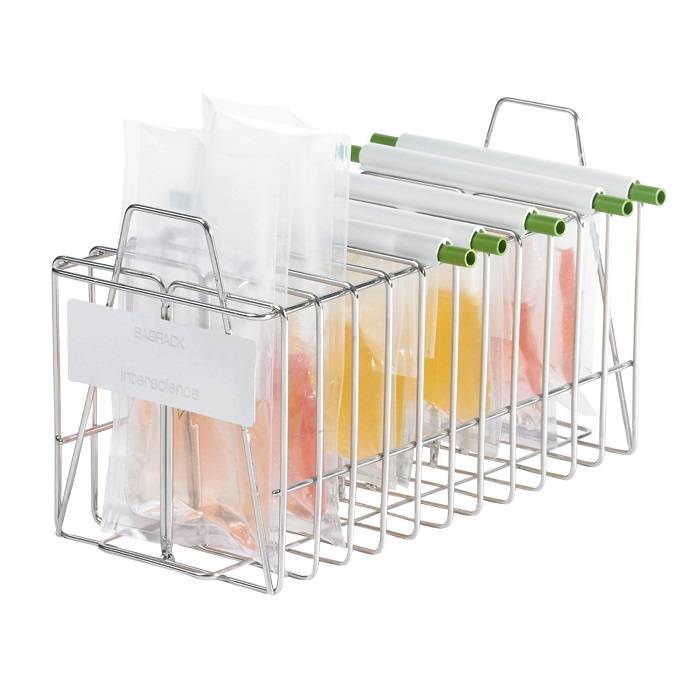 Stojaki BagRack® wykonane są ze stali nierdzewnej. Mogą być ustawiane piętrowo i autoklawowane.