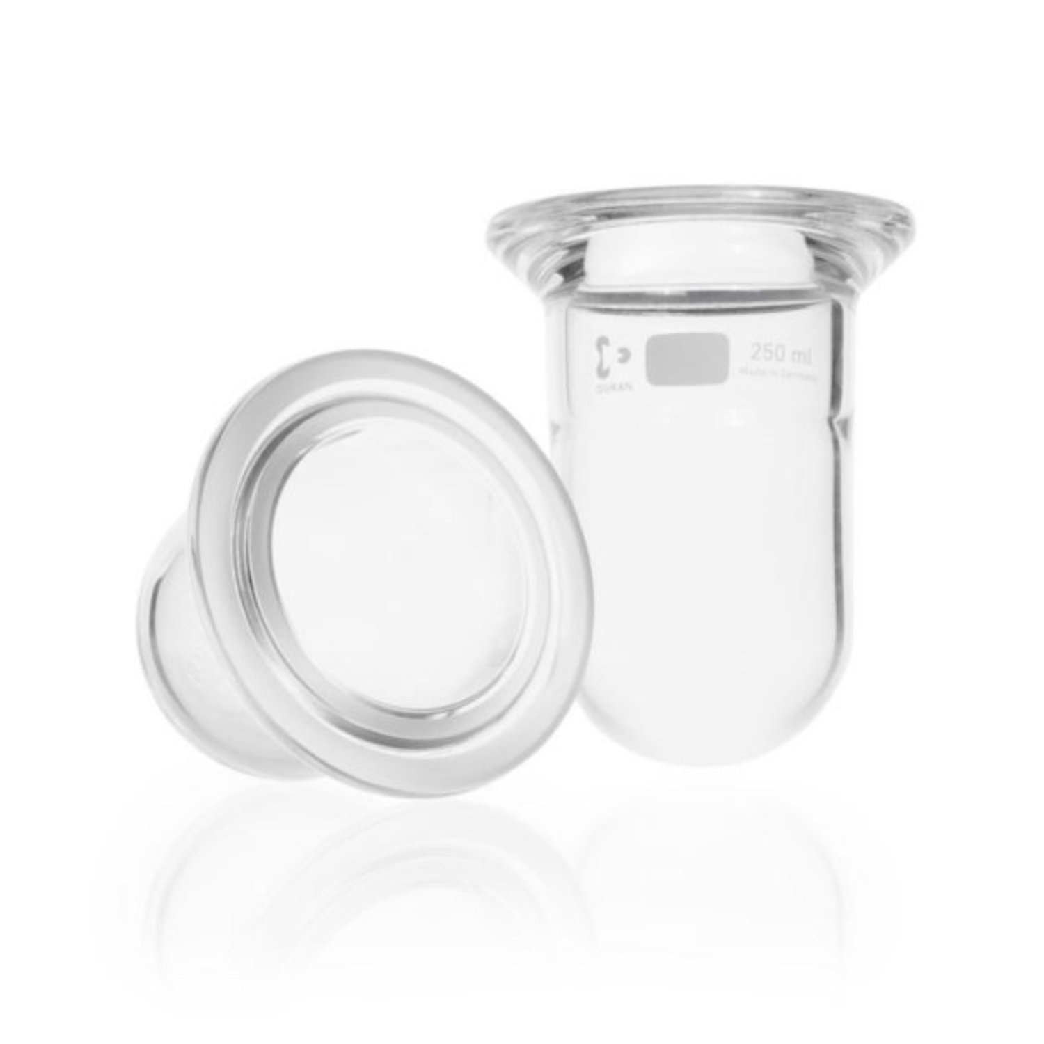 Szklane reaktory DURAN o cylindrycznym kształcie, wykonane z wysokiej jakości szkła borokrzemowego 3.3. Kociołki reakcyjne z płaskim kołnierzem mogą z powodzeniem zastąpić tradycyjne kolby okrągłodenne. Szeroki otwór umożliwia łatwy dostęp do mieszaniny reakcyjnej. Dostępne w różnych pojemnościach – od 100 ml do 10 l.