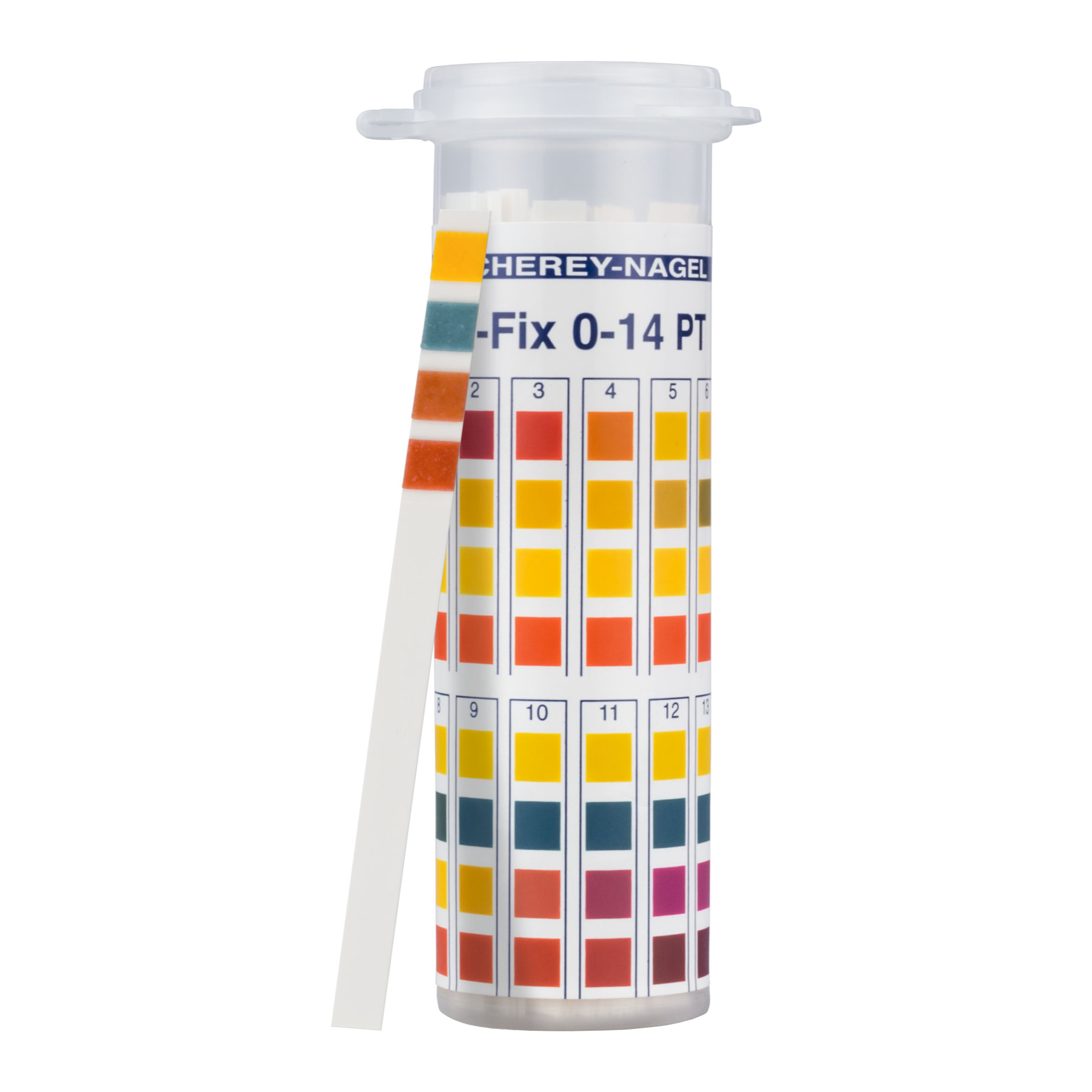 Paski wskaźnikowe pH-Fix w wygodnej tubie przeznaczone do wykonywania szybkich testów odczynu roztworu. Każda tuba zawiera 100 pasków. Na opakowaniu znajduje się skala barwna, która umożliwia szybką interpretację wyników. Przedłużona część do trzymania poprawia ergonomię pracy i zabezpiecza przed kontaktem z próbką oraz jej zanieczyszczeniem. Barwnik z pasków nie jest uwalniany do roztworu. Każdy pasek posiada cztery pola wskaźnikowe, które pozwalają na dokładny odczyt pH. Paski pH-Fix w tubie oferowane są dla 3 zakresów pomiarowych: