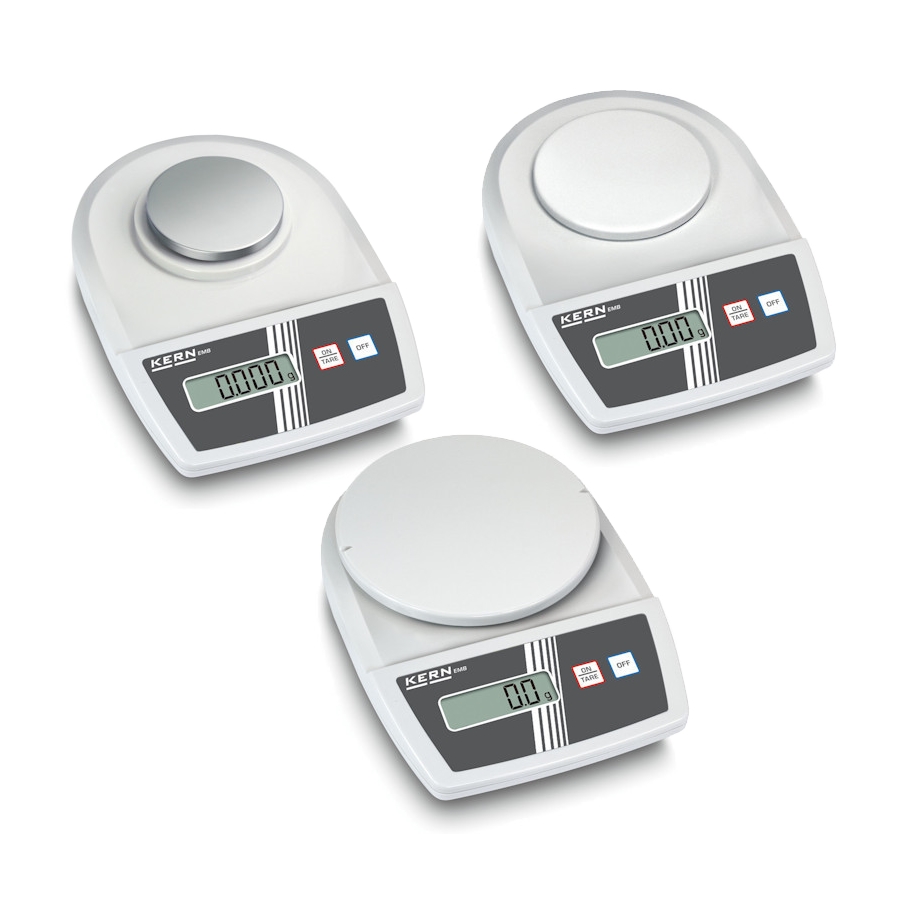 System wag Kern EMB to zbiór urządzeń o niewielkich wymiarach oraz wadze, który dzięki uproszczonemu procesowi działania i tylko kilku przyciskom pozwala na przejście przez pomiar nawet bez instrukcji obsługi. Graficzny panel sterowania i wyświetlacz LCD sprzyjają bezproblemowej pracy z urządzeniem. Zakres ważenia urządzeń wynosi od 100 do 6 kg, różni się w zależności od modelu, tak jak i dokładność wag – od 0,001 g do 5 g.