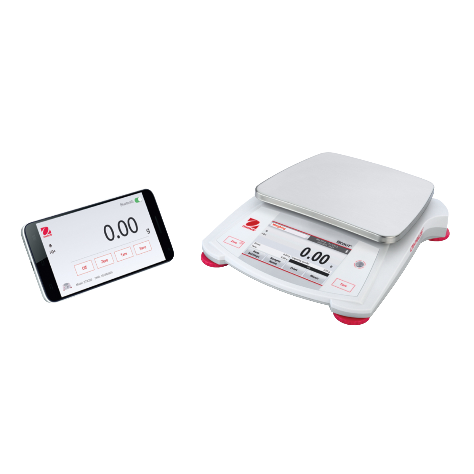 Waga przenośna Scout® STX oferuje wiele trybów pracy: ważenie, liczenie sztuk, ważenie procentowe, ważenie kontrolne, pomiar gęstości, ważenie zwierząt/dynamiczne, sumowanie, zapamiętywanie wskazania. Zastosowano dotykowy ekran VGA 109 mm, który dzięki dużemu rozmiarowi i menu w formie ikon znacząco ułatwia obsługę wagi. Wyświetlacz posiada regulację jasności przez użytkownika. Urządzenie zasilane może być poprzez zasilacz sieciowy (w zestawie) lub 4 AA (w zestawie).