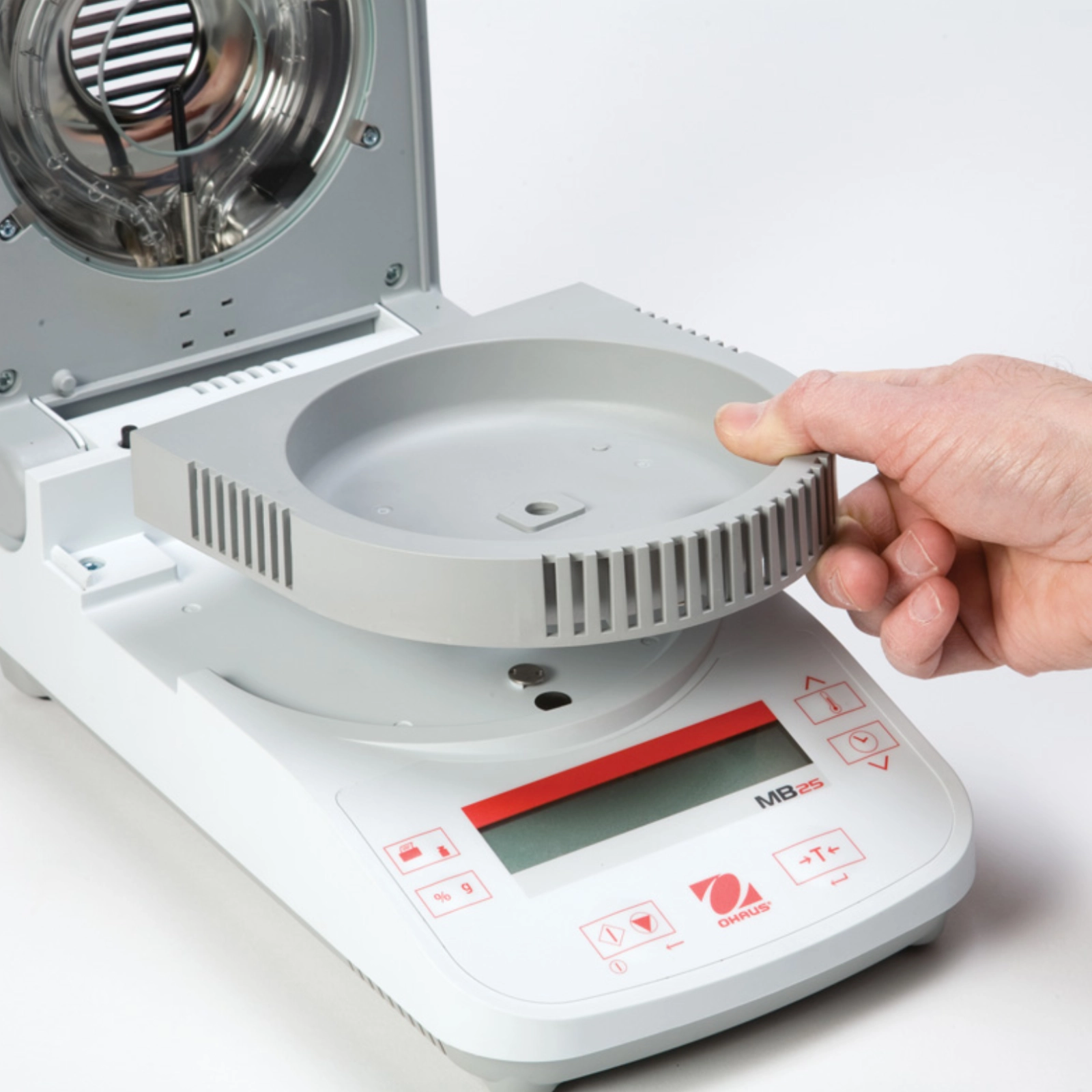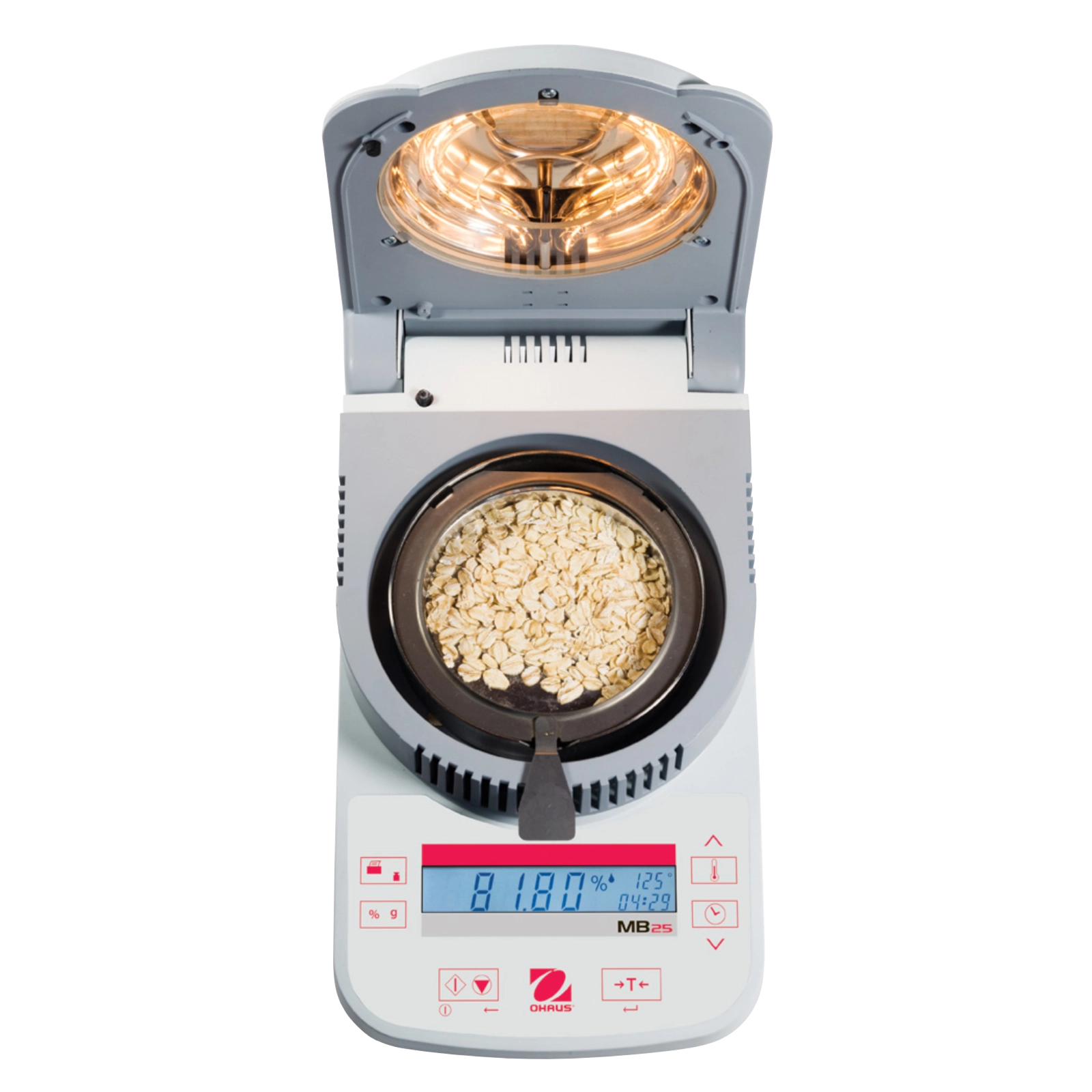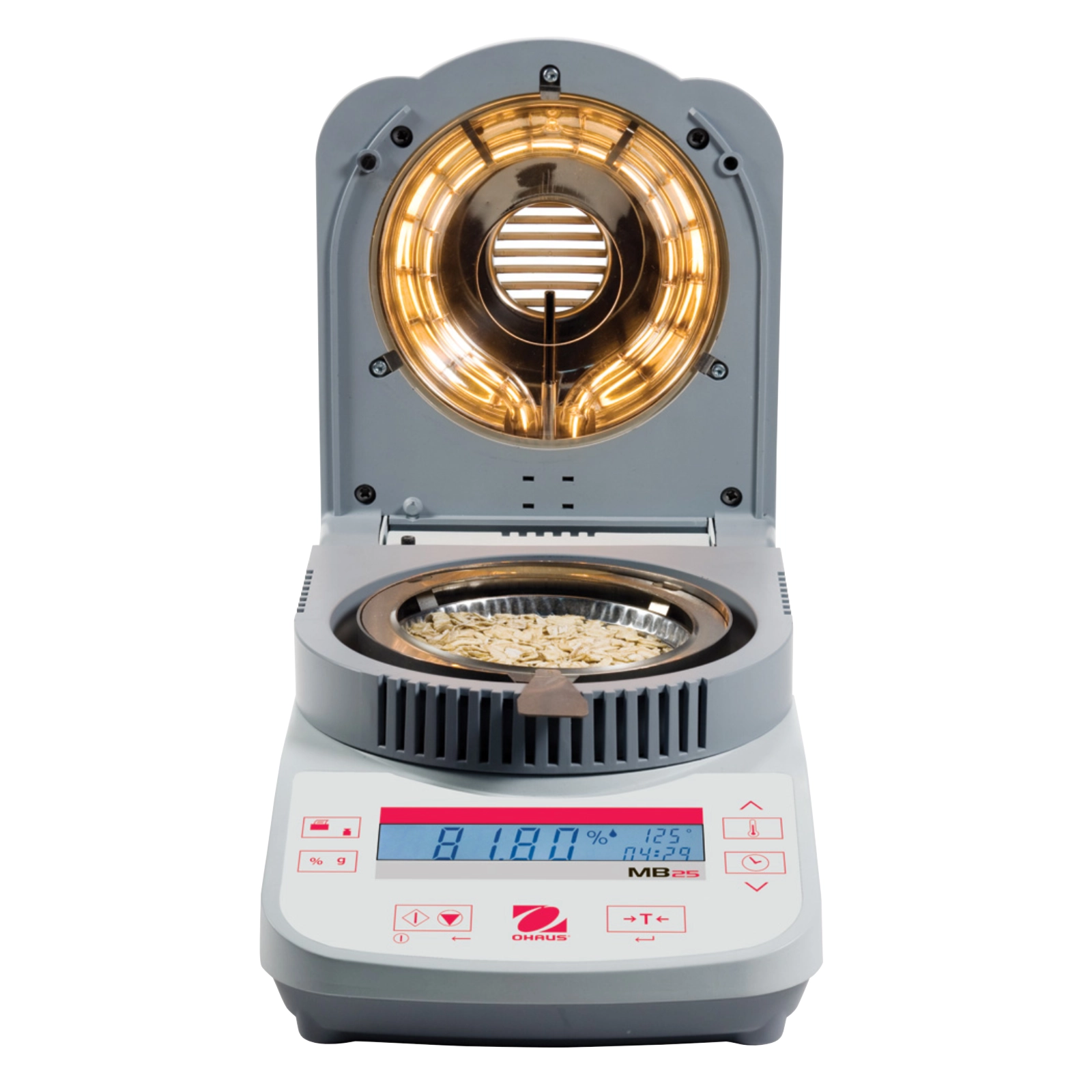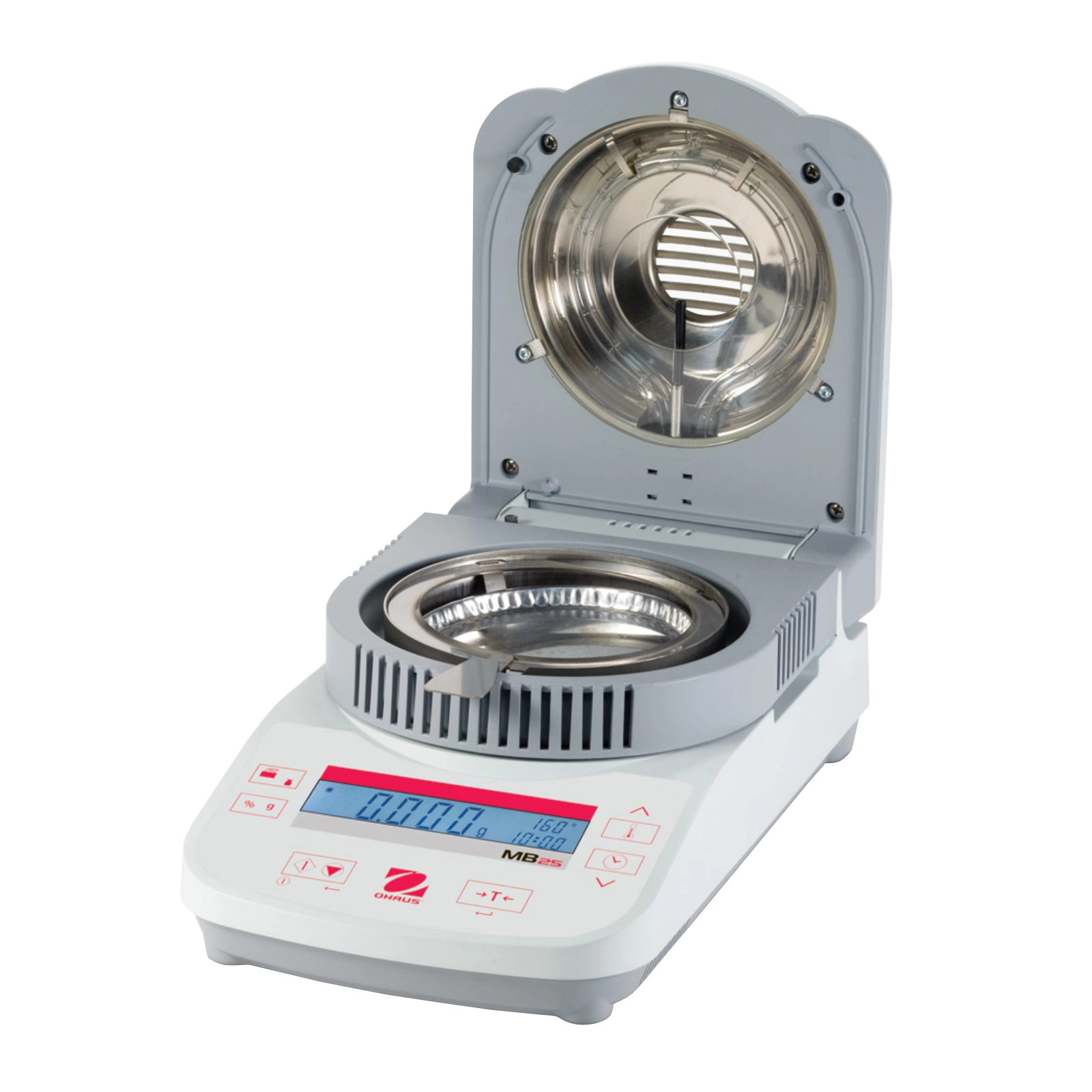 MB25 firmy Ohaus to wysokiej jakości wagosuszarka służąca do analizy wilgotności próbki. Urządzenie znajduje zastosowanie w wielu dziedzinach nauki i przemysłu. Otrzymywane wyniki są wysoce powtarzalne (odch. stand. 0,2% dla 3 g próbki, 0,05% dla 10 g próbki). Dokładność odczytu wynosi 0,005 g. Źródło ciepła w MB25 stanowi lampa halogenowa. Wagosuszarka posiada prosty w obsłudze panel sterowania. Nieskomplikowana budowa tego urządzenia czyni je łatwym w czyszczeniu. Dzięki czemu nadaje się ono do codziennego użytku.