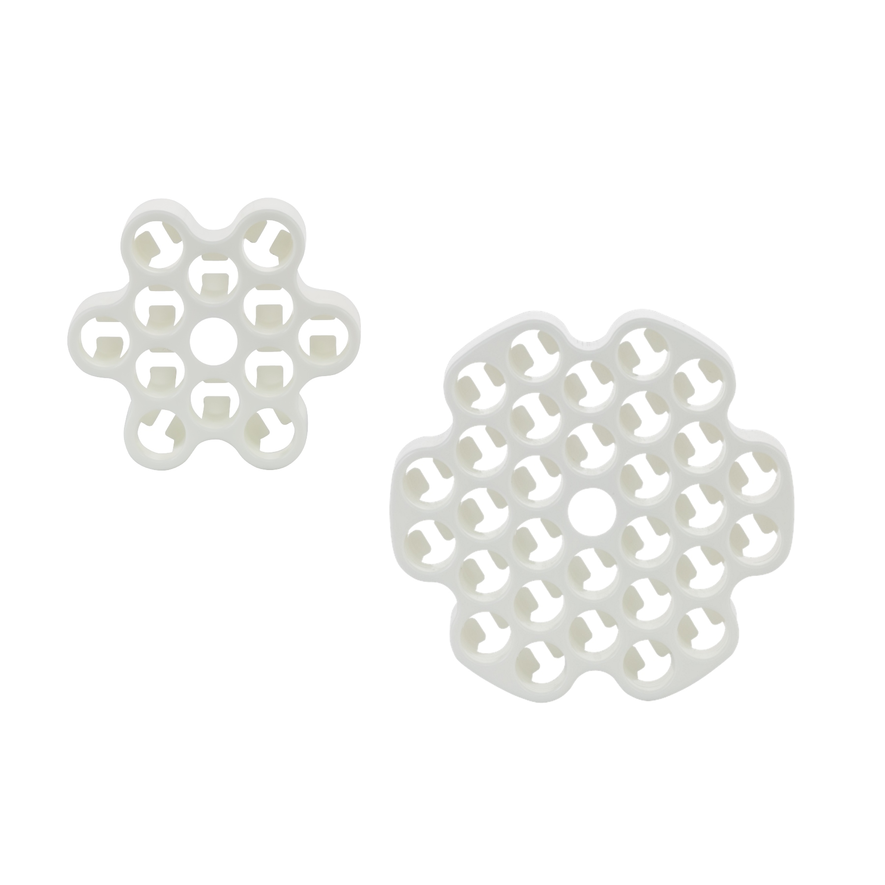 Wymienne wkłady do pojemników do zamrażania CellCamper® o okrągłym kształcie, zawierające 12 lub 30 otworów. Odpowiednie do użycia z krioprobówkami o pojemności do 2 ml.