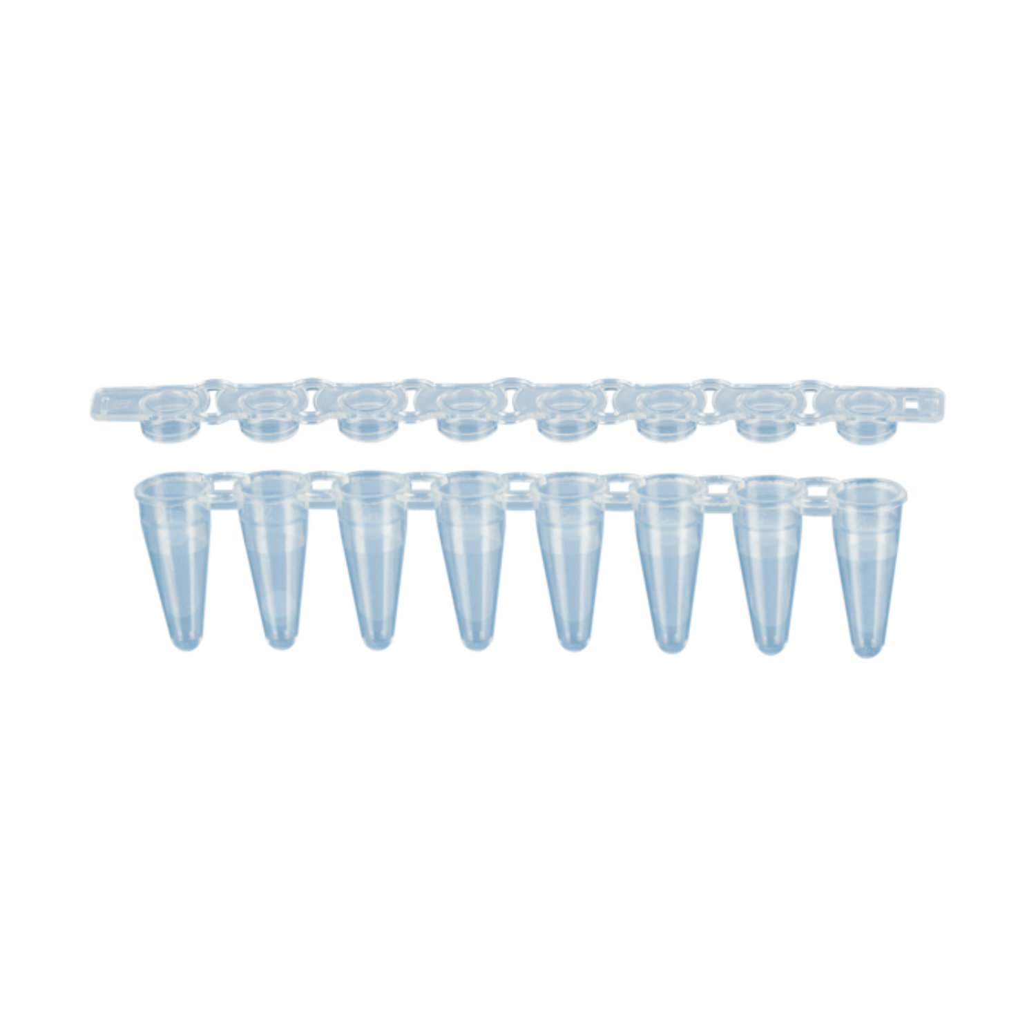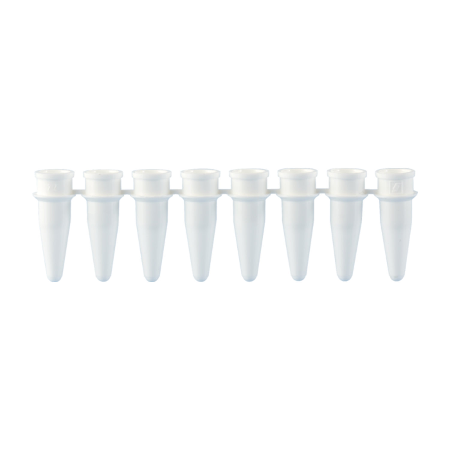 Probówki Multiply®-µStripPro o pojemności 0,1 ml połączone w paski 8-stanowiskowe wraz z paskiem pokrywek. Wykonane z PP. Odpowiednie do PCR oraz qPCR (real-time PCR). Probówki posiadają certyfikat PCR Performance Tested. Dostępna jest wersja z probówkami bezbarwnymi lub białymi. Opakowanie zawiera 125 szt.