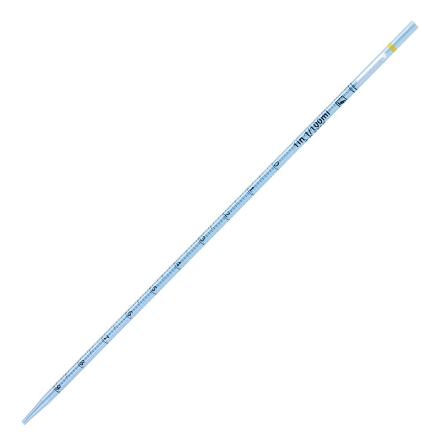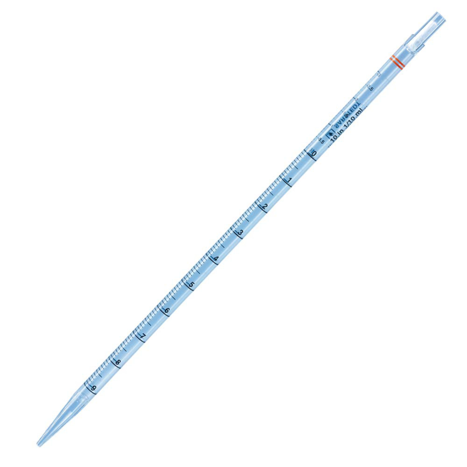 Pipety serologiczne wykonane z PS. Pojemność do 1 ml do 50 ml. Z czytelną, dwukierunkową podziałką. Oznaczone kodem barwnym, co pozwala szybko zidentyfikować pipetę o odpowiedniej pojemności. Dostępne w wersji niesterylnej bez zatyczki oraz sterylnej z zatyczką z waty.