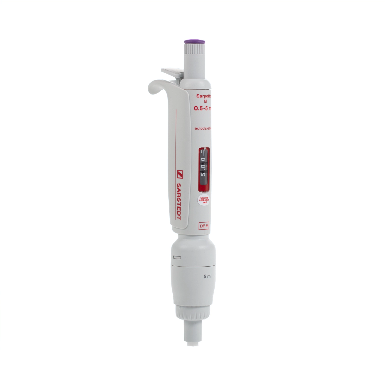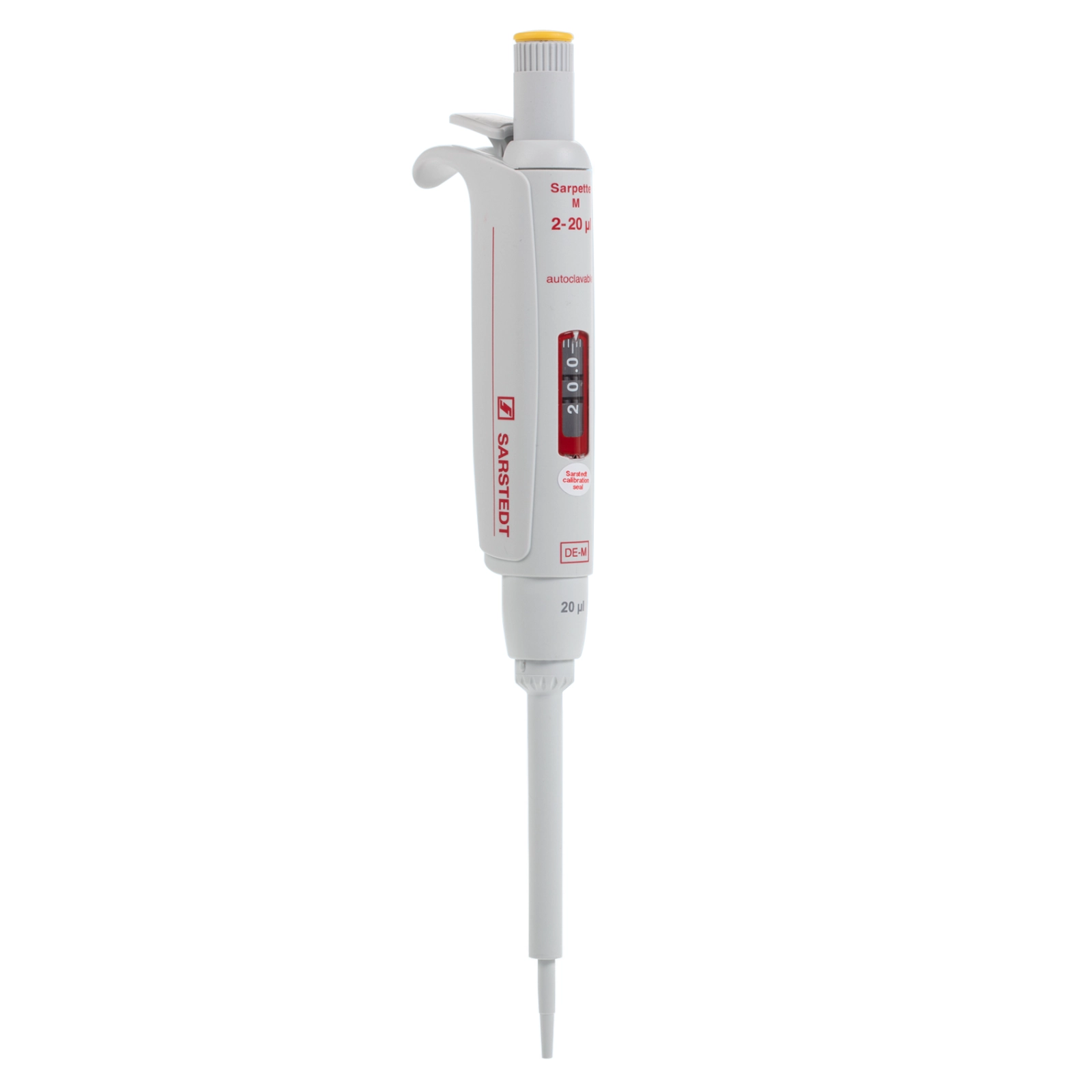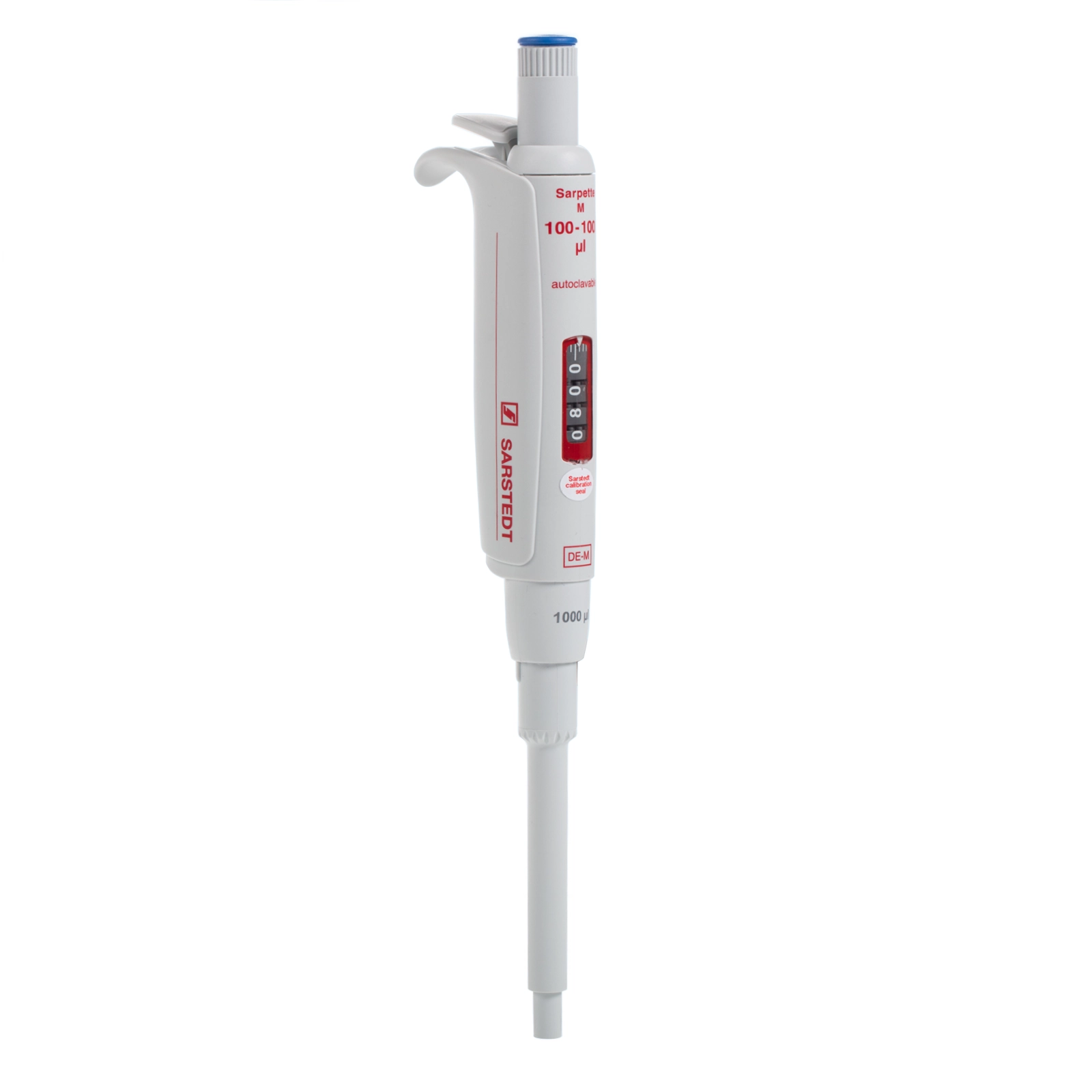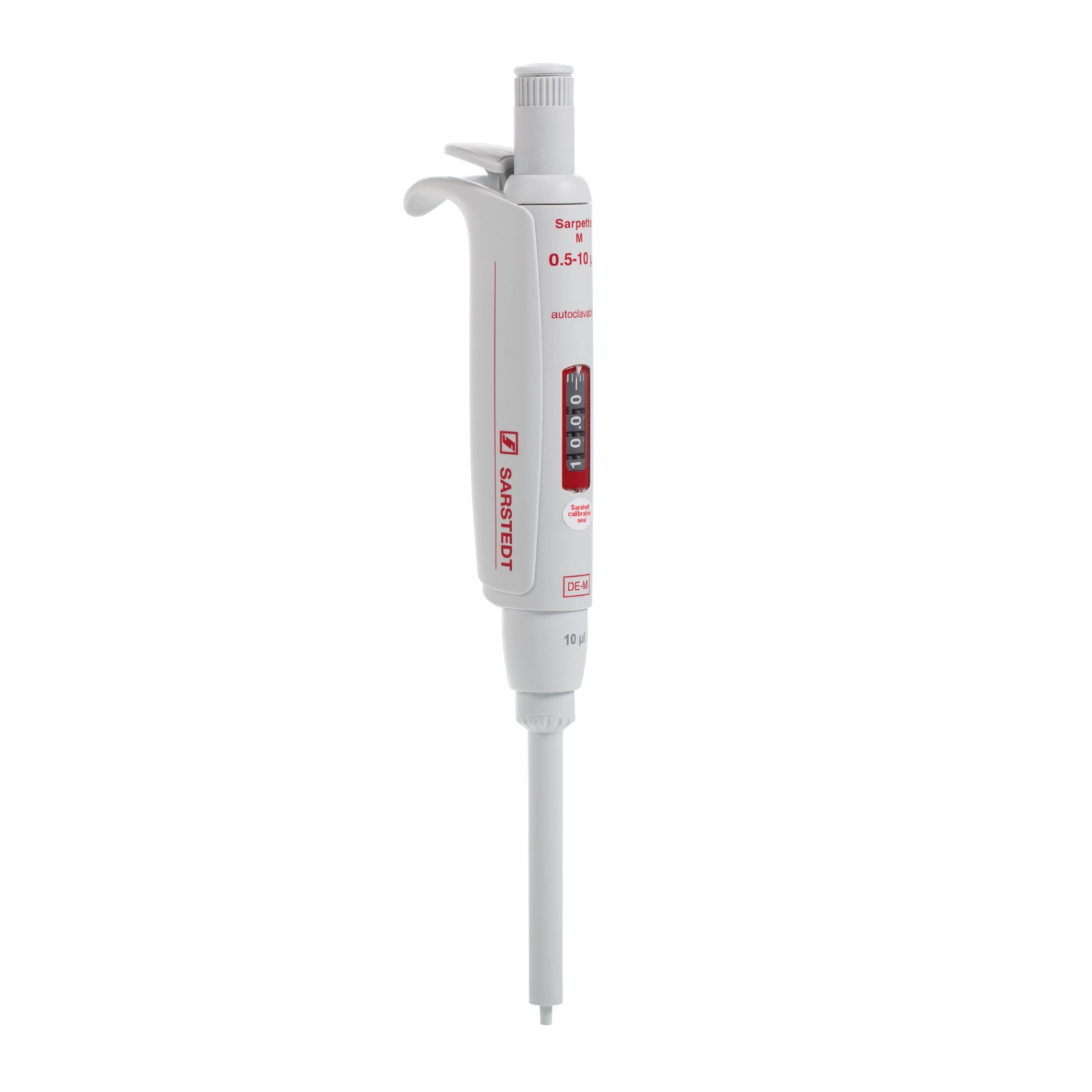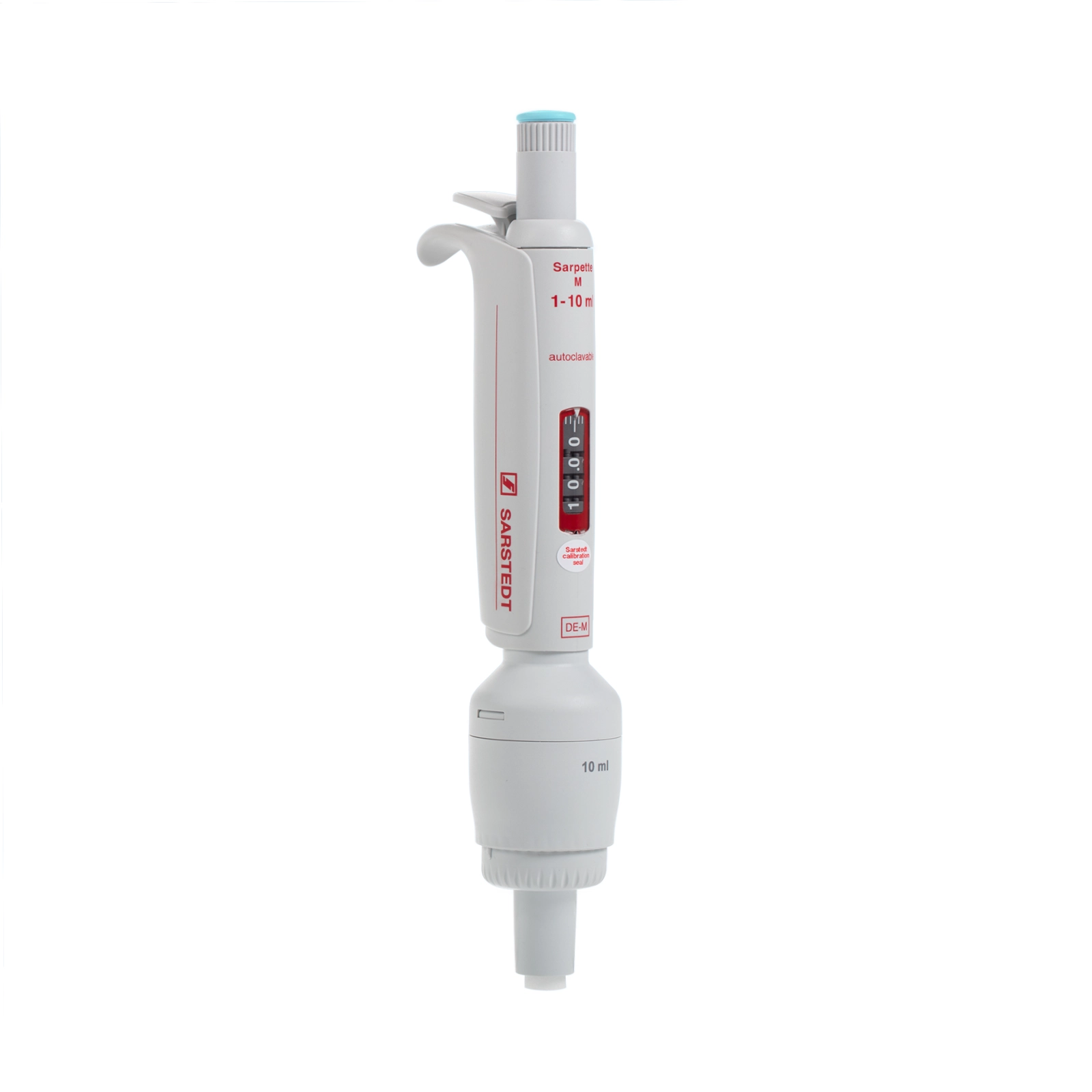 Pipety automatyczne Sarpette® M jednokanałowe o różnych zakresach pojemności od 0,1 μl do 10 ml. Niezrównana precyzja i wysoka jakość wykonania. Wskaźnik cyfrowy z dobrą widocznością ustawień, gwarantujący najwyższą dokładność. Ergonomiczna konstrukcja niewymagająca wysiłku podczas pracy. Kod barwny umieszczony na pipecie umożliwia szybką identyfikację odpowiedniej pipety i wybór odpowiedniej końcówki.