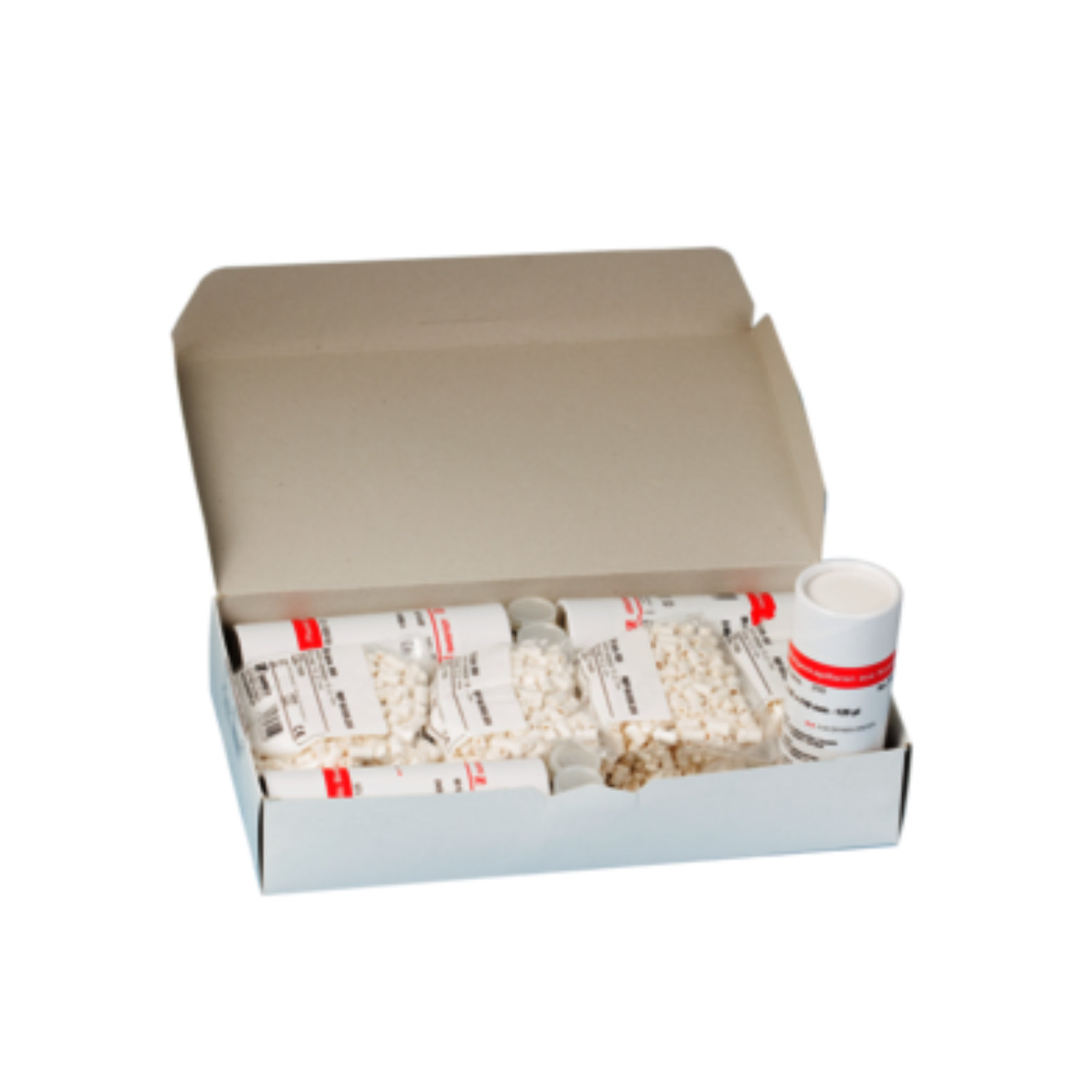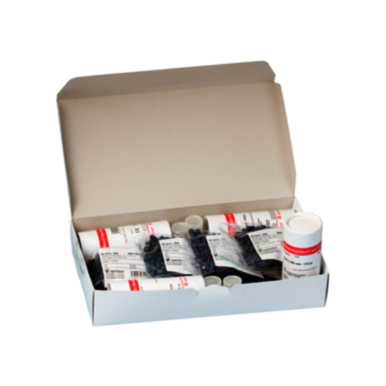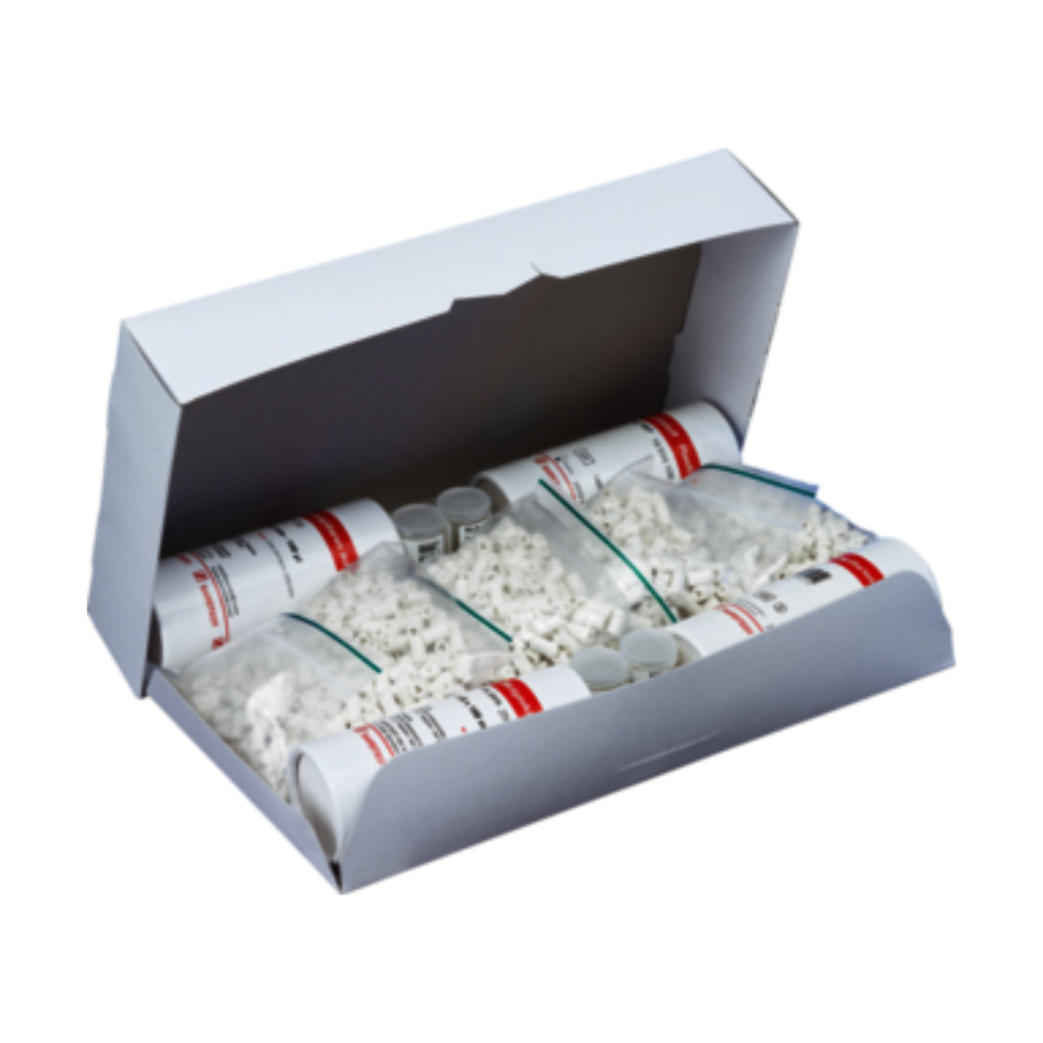 Zestaw zawierający cztery opakowania kapilar z tworzywa PET do gazometrii wraz z odpowiednimi zatyczkami i drucianymi mieszadełkami. Oferowane komplety wystarczają do pobrania 1000 mniejszych lub 800 większych próbek.