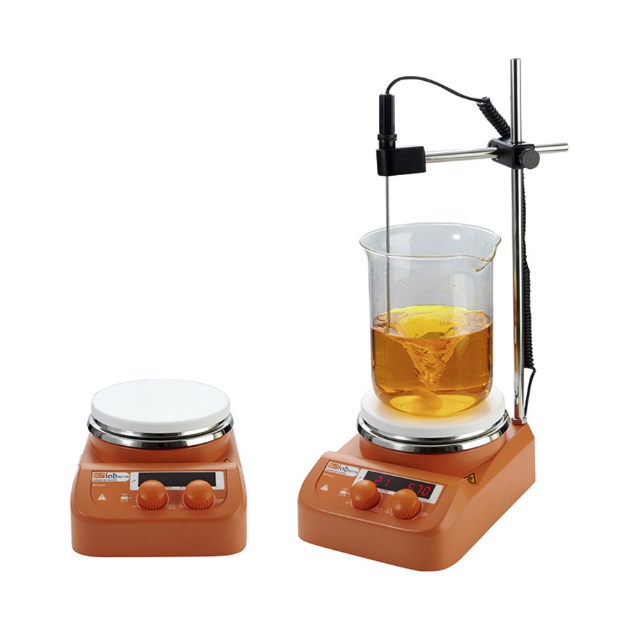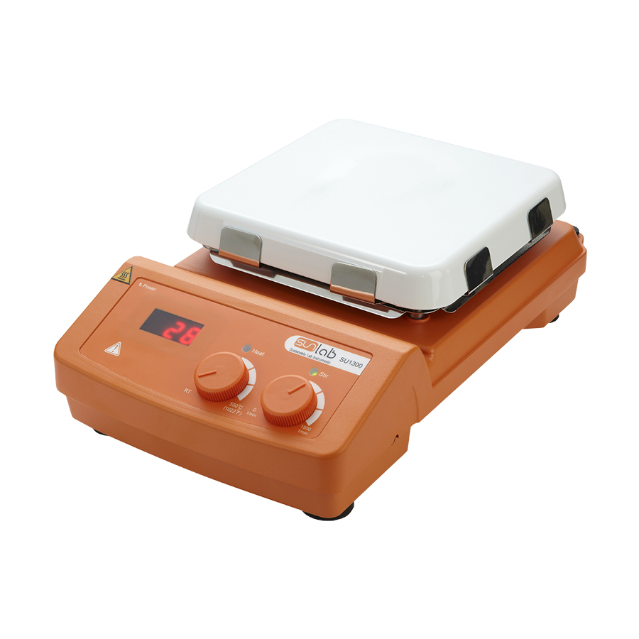 Mieszadło magnetyczne z grzaniem firmy Sunlab. Płyta grzejna wykonana ze stali szlachetnej jest pokryta powłoką ceramiczną. Posiada dwa wyświetlacze LED. Maksymalna objętość mieszanej cieczy wynosi 3 l przy temperaturze maksymalnej 280°C. W zestawie czujnik temperatury PT1000.