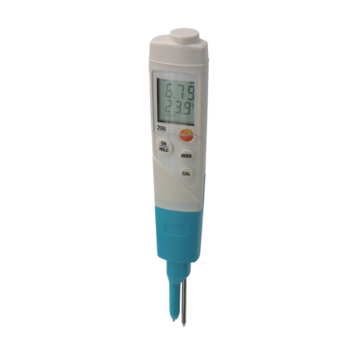 Precyzyjny przyrząd do pomiaru pH i temperatury w próbkach półstałych z automatyczną kompensacją temperatury. Ma ergonomiczny kształt, wymienną końcówkę pomiarową, jasny i czytelny wyświetlacz. Jest również wodoodporny i dopuszczony do kontaktu z żywnością.