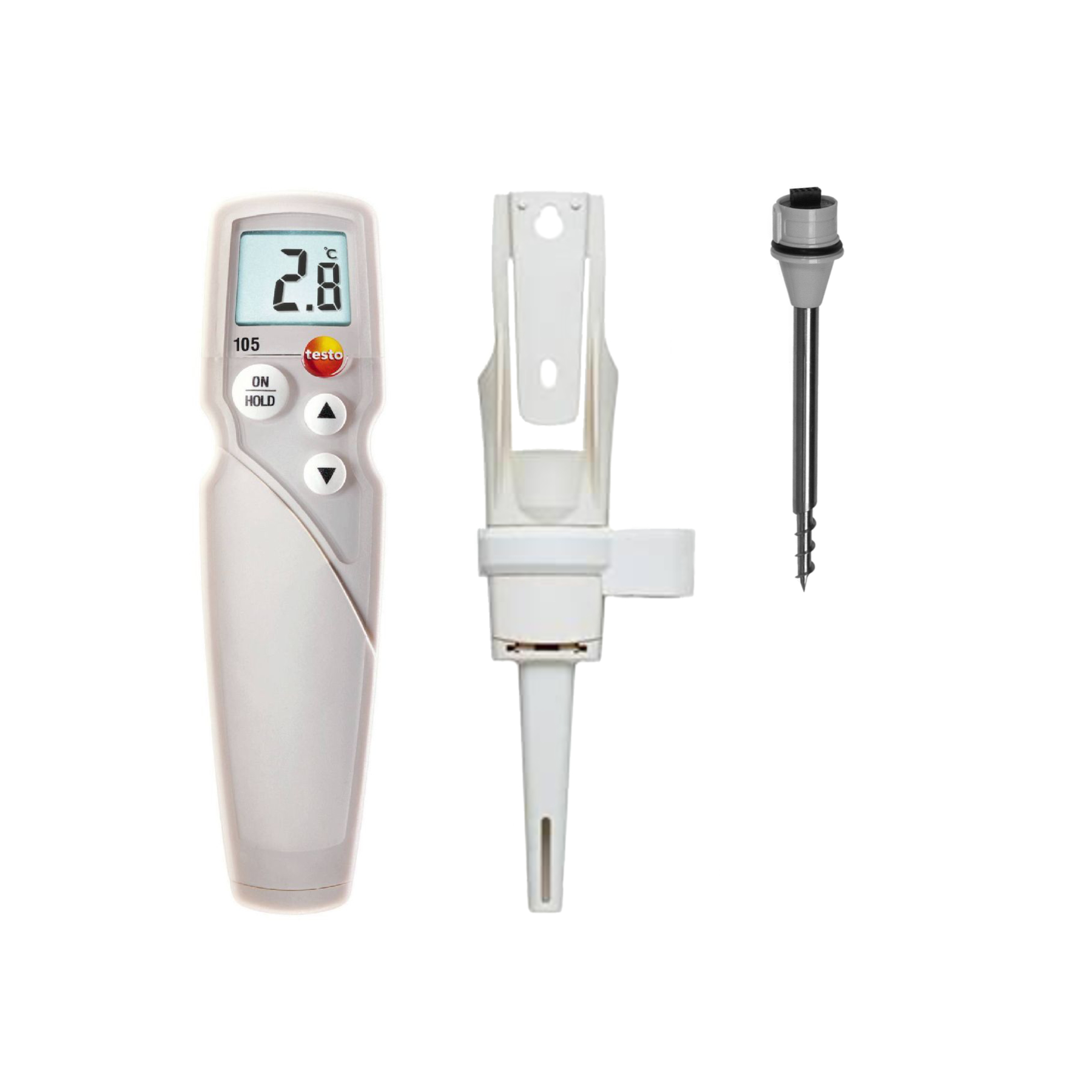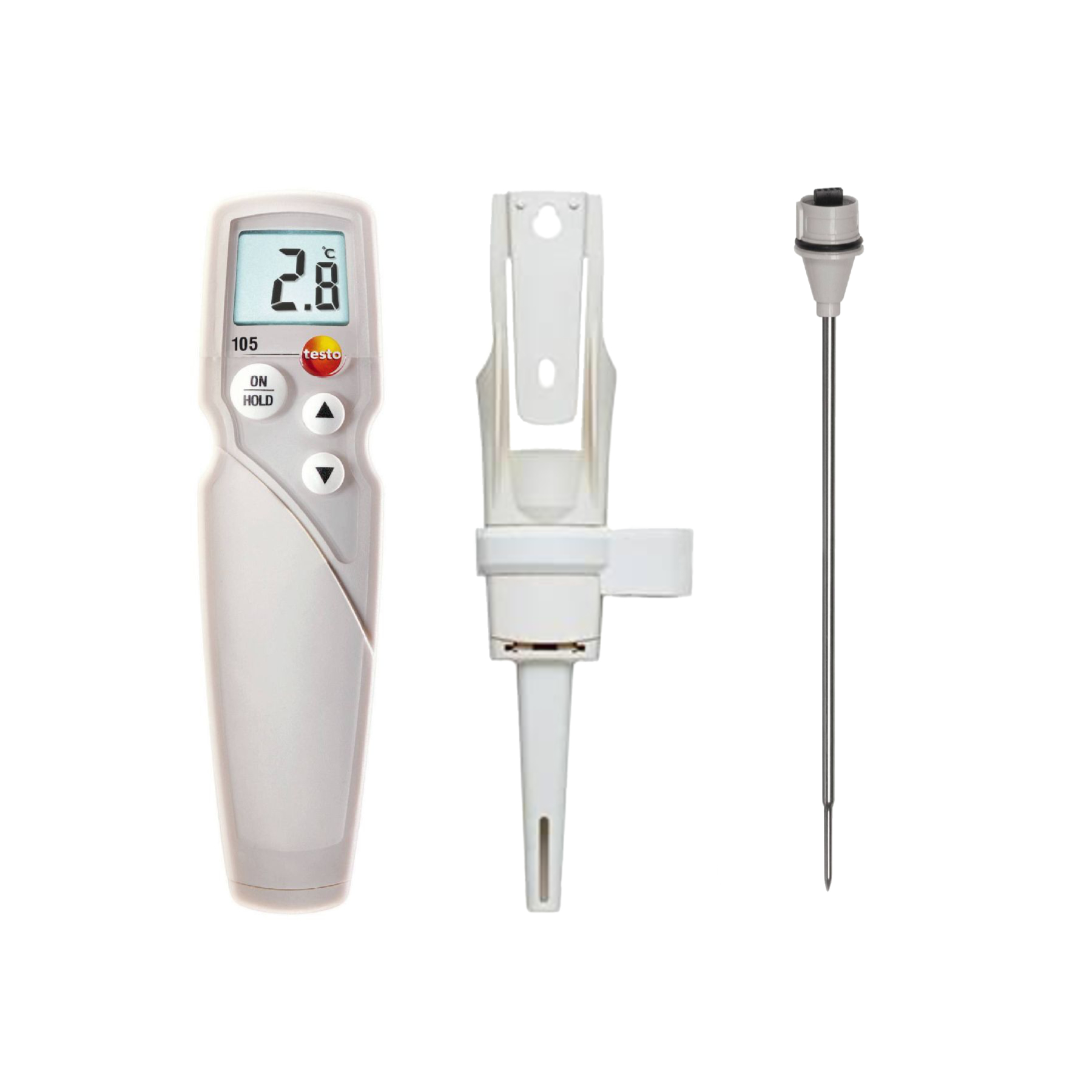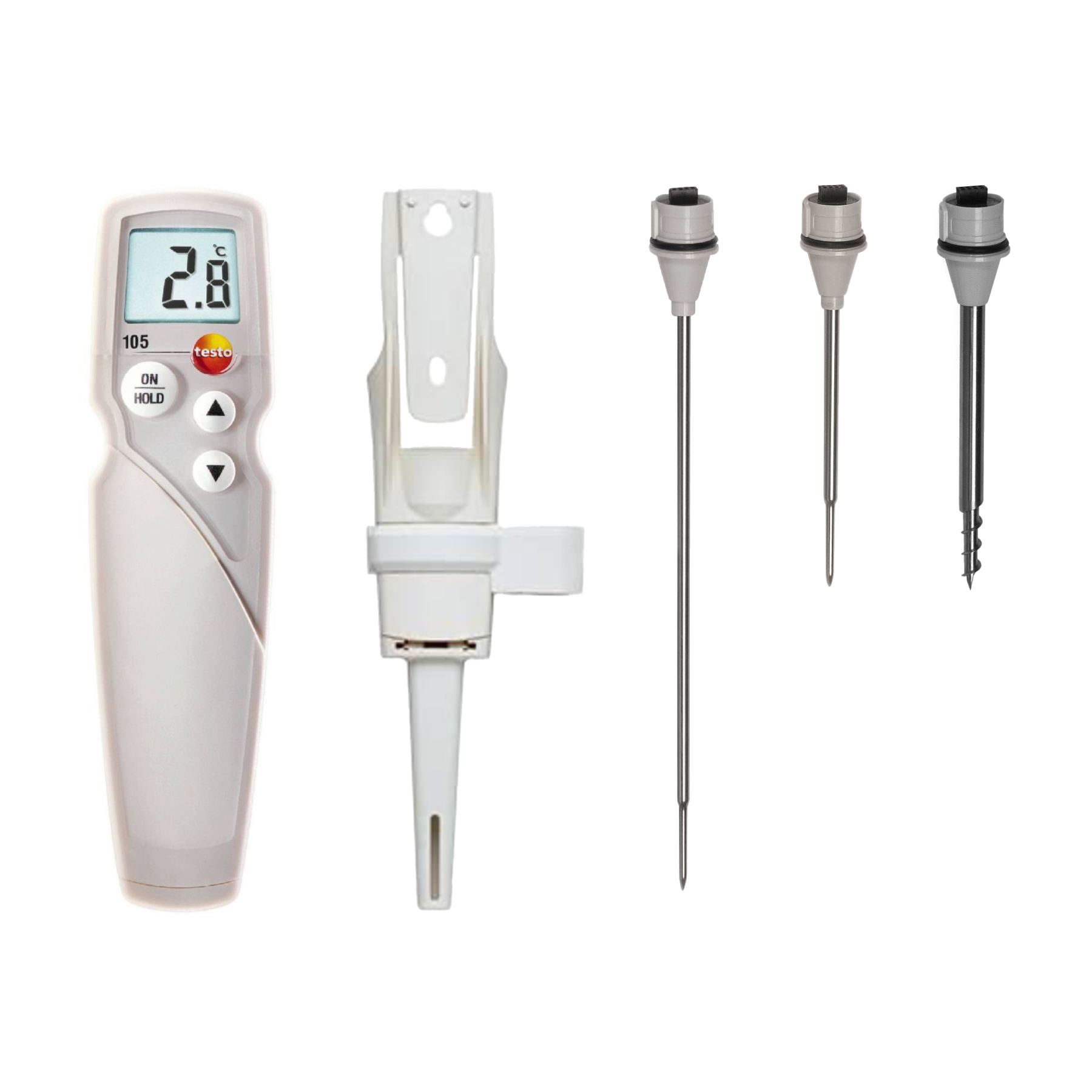 Elektroniczny termometr Testo 105 jest wodoodporny, posiada łatwe do wymiany sondy. Wyposażony jest w alarm akustyczny i diodę alarmową. Termometr jest zgodny z HACCP i EN 13485. Służy do pomiarów temperatury w zakresie od -50 do +275 °C.